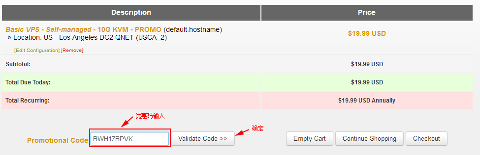 输入优惠码:BWH1ZBPVK,优惠后价格为$18.79/3个月