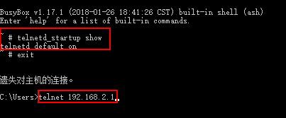 windows命令行telnet连接K3C(telnet 192.168.2.1),然后输入telnetd_startup show查看是否打开永久标志