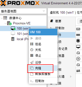 如要创建多个相同的小鸡可以采用克隆的方式,注意在关机状态克隆: